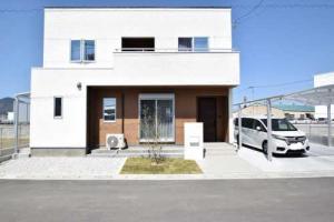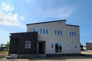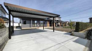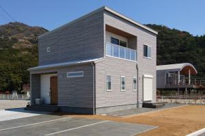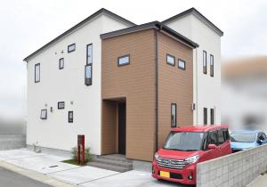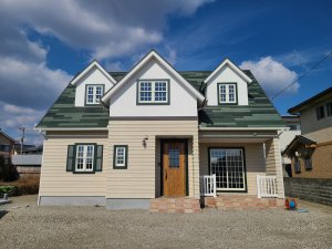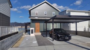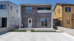 省エネ社会にマッチしたZEH建売住宅。グレーカラーの木目調ラップサイディングがお洒落なアメリカンスタイルのお家。