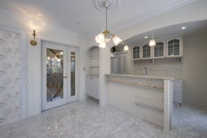 ヨーロピアンハウスの真っ白な塗壁を、モルタル造形の技術でフレンチアンティークにリフォーム。