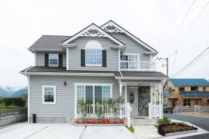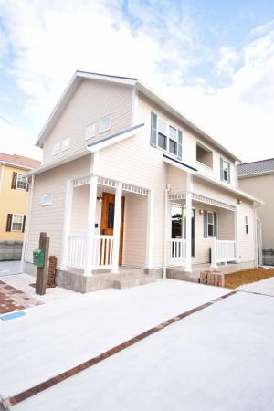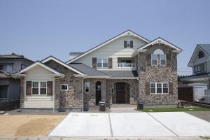 ブルーの鎧戸が外観を惹き立つアメリカンスタイルのお家が完成!