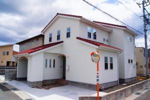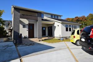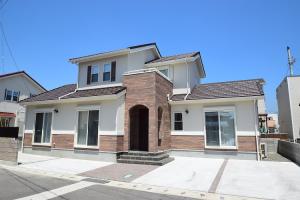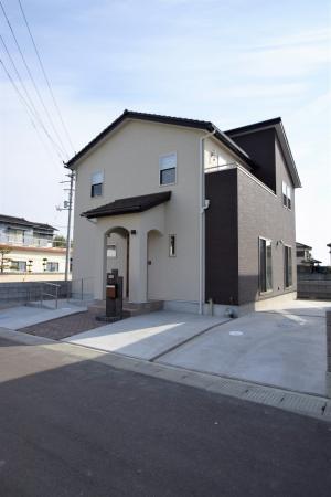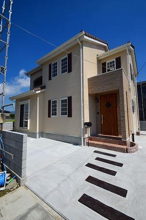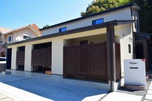 ウッド調の外壁と鎧戸がアクセントのお家が完成!